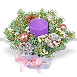 Снежные хлопья - коробка с белыми розами и гиперикумом