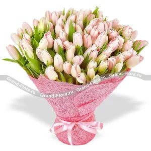 Нежность – букет с розовыми кустовыми розами и тюльпанами