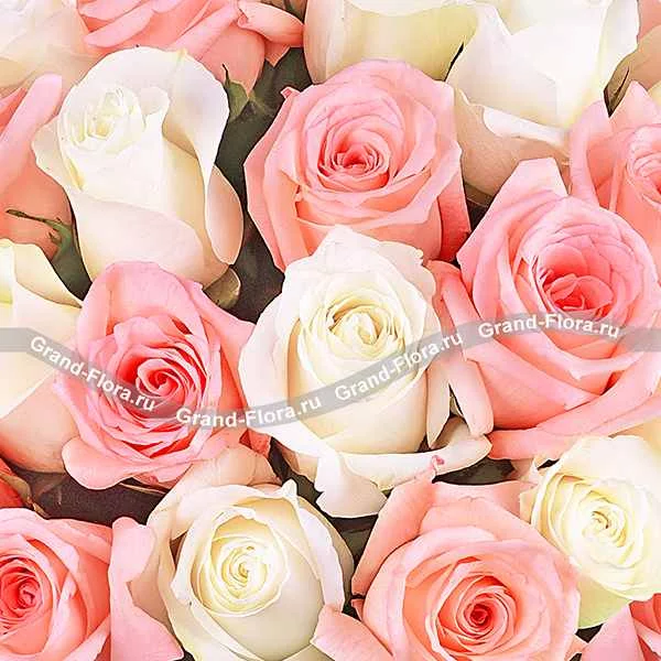Роза белая (кремовая) и розовая 70 см - 51 шт , упаковка фетр.