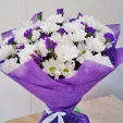Букет из элегантных белых кустовых хризантем – само олицетворение нежности и женственности. Такой изысканный комплимент даст девушке почувствовать себя прекрасной богиней!