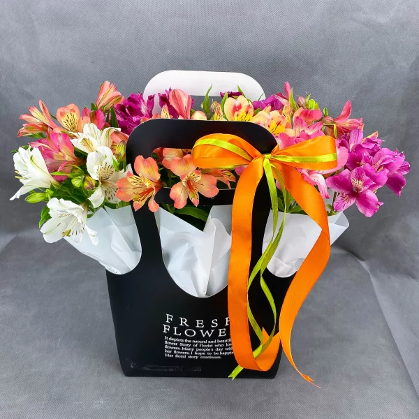 Альстромерии разноцветные – 15 шт.,оазис, коробка.